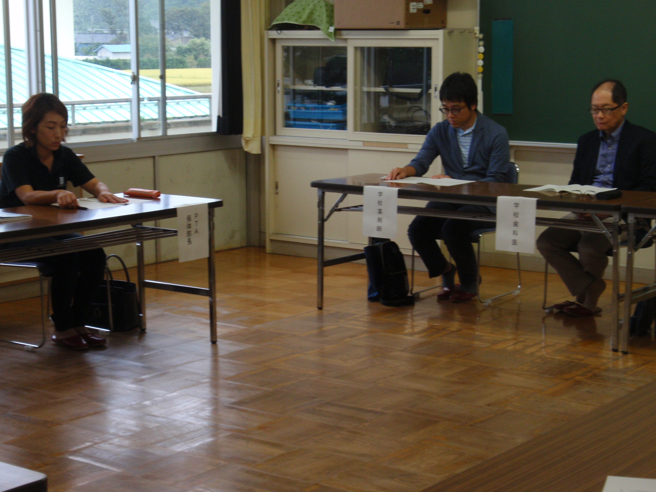 15:10より、本校学校歯科医の「いいの歯科医院」鈴木先生、学校薬剤師の「ハル薬局」安田先生、PTA保体部長の千葉様にお越しいただき、「学校保健委員会」を開催いたしました。