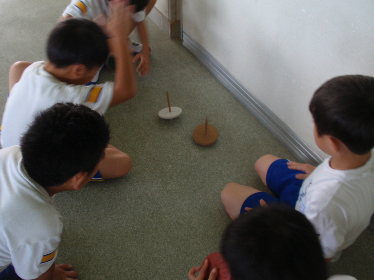 こうした、挑戦と失敗を繰り返しながら、子供たちは遊びを通して、考える力・工夫する力・協力する心・あきらめない心などを学んでいくのだなぁと、一緒にコマ回しに興じながら、改めて感じました。