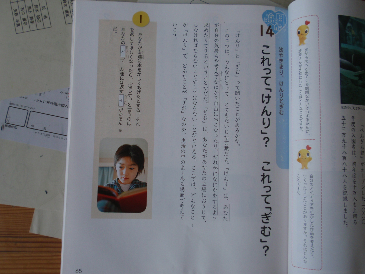 5年生の道徳の授業を例に、その一端をご紹介します。「権利」と「義務」について考える授業、簡単なようで、とても難しい問題です。