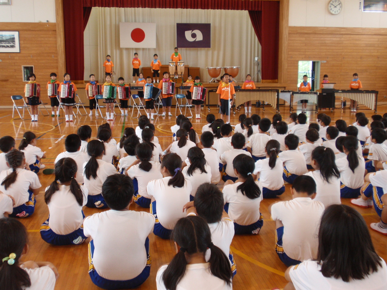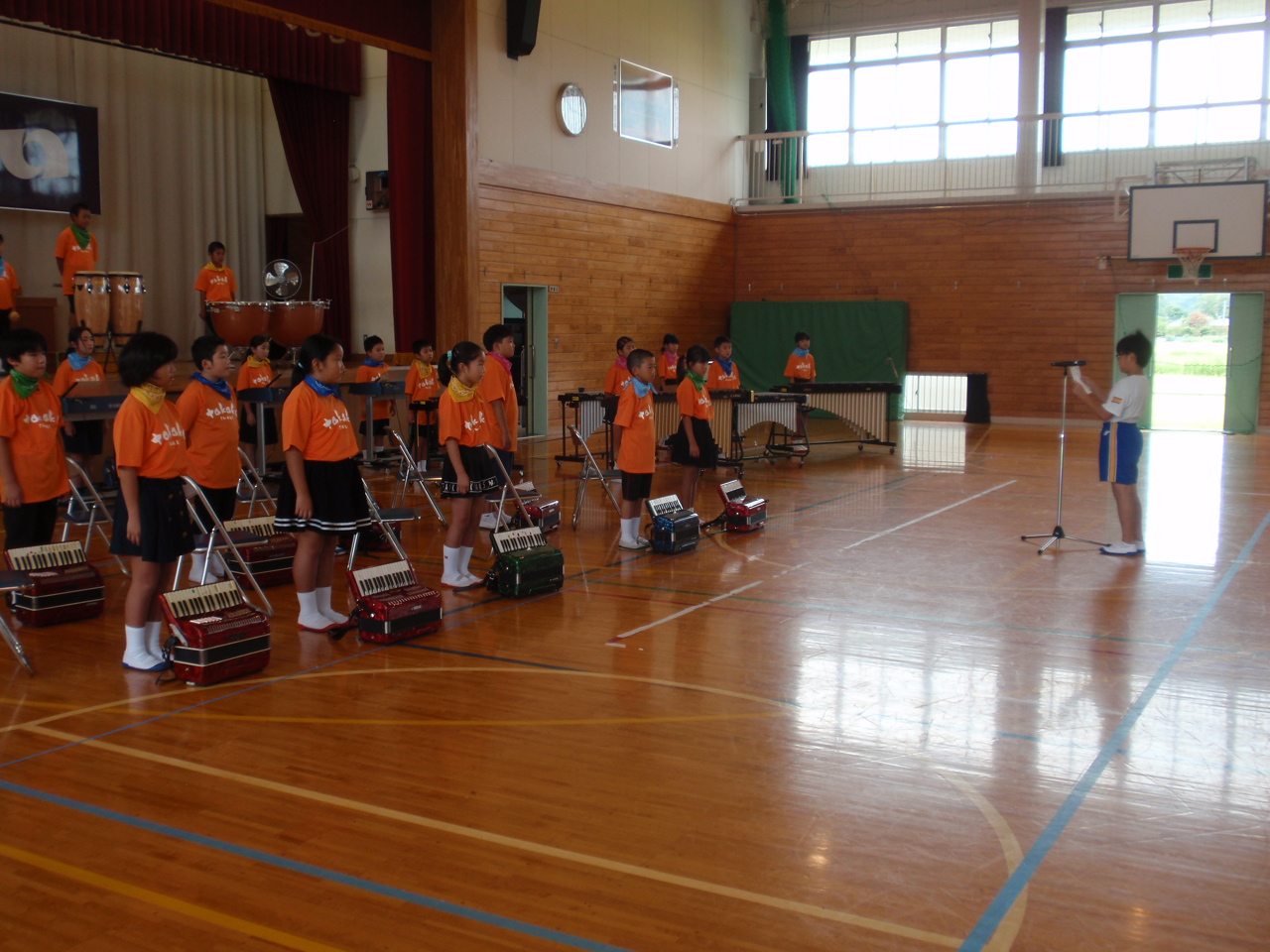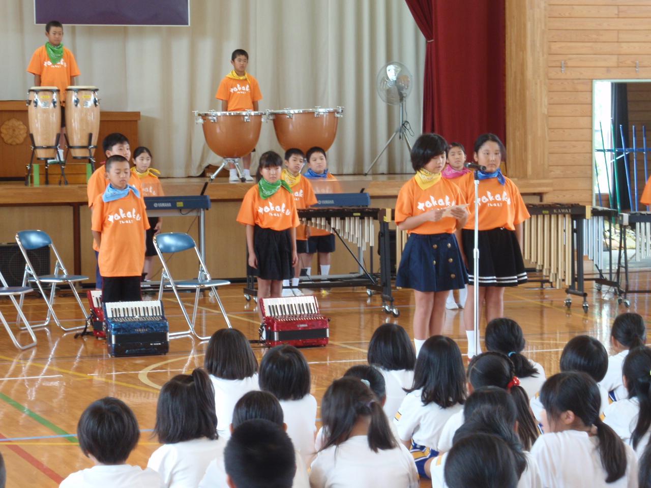 9月14日(金)に、いわき芸術文化交流館アリオスにおいて「平方部小学校音楽祭」が開催されます。本校からも4年生20名が参加しますが、本番を4日後に控えた今日、全校集会において「音楽祭激励会」を行いました。