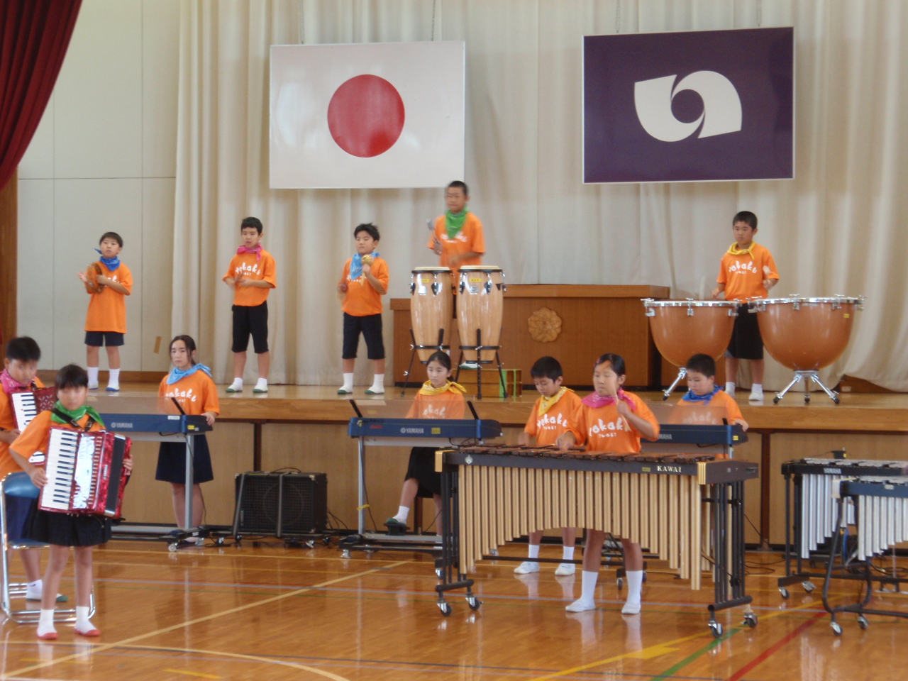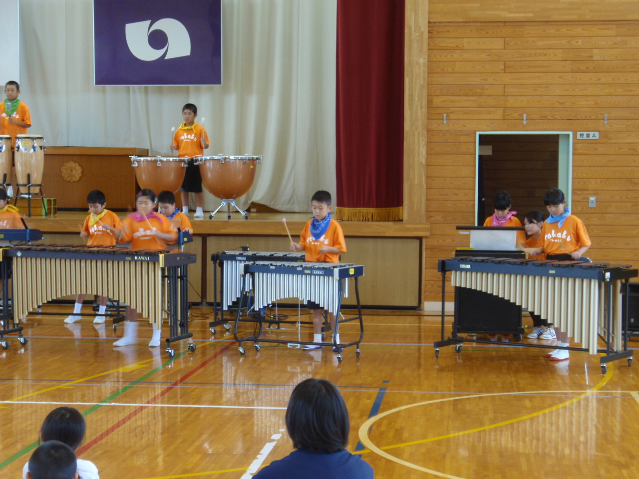 4年生20名が演奏する曲は「エルクンバンチェロ」。「太鼓をたたいてお祭り騒ぎをする人」という意味があるそうです。おそろいのかっこいいTシャツにも負けない、息の合った迫力ある素敵なハーモニーに、子供たちも先生方も、大きな拍手を送っていました。音楽祭当日も、自分たちらしい最高の演奏ができるよう、応援しています。