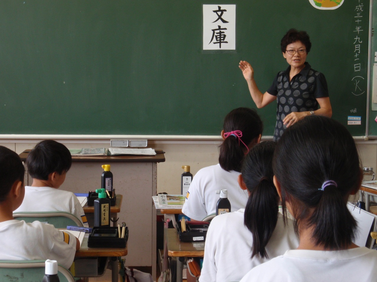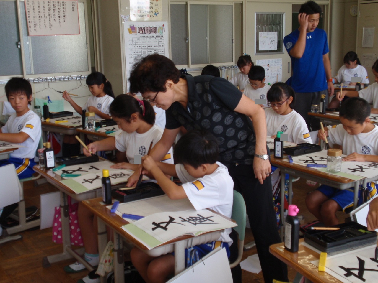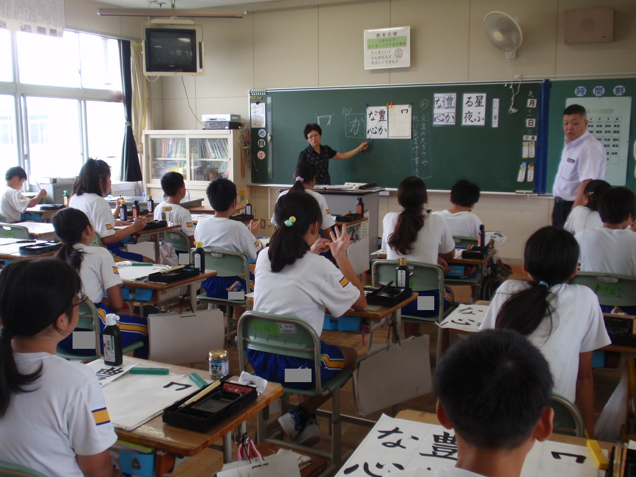 2・3校時に、書家の 丹 美枝 先生を講師にお迎えし、書写の特別授業を行いました。ご両親が書家というご家庭にお生まれになった丹先生は、まさに書道のスペシャリスト。元小学校長でいらっしゃったこともあり、子供たちへの細やかで分かりやすい指導は、見ていた私たちも、大変勉強になりました。