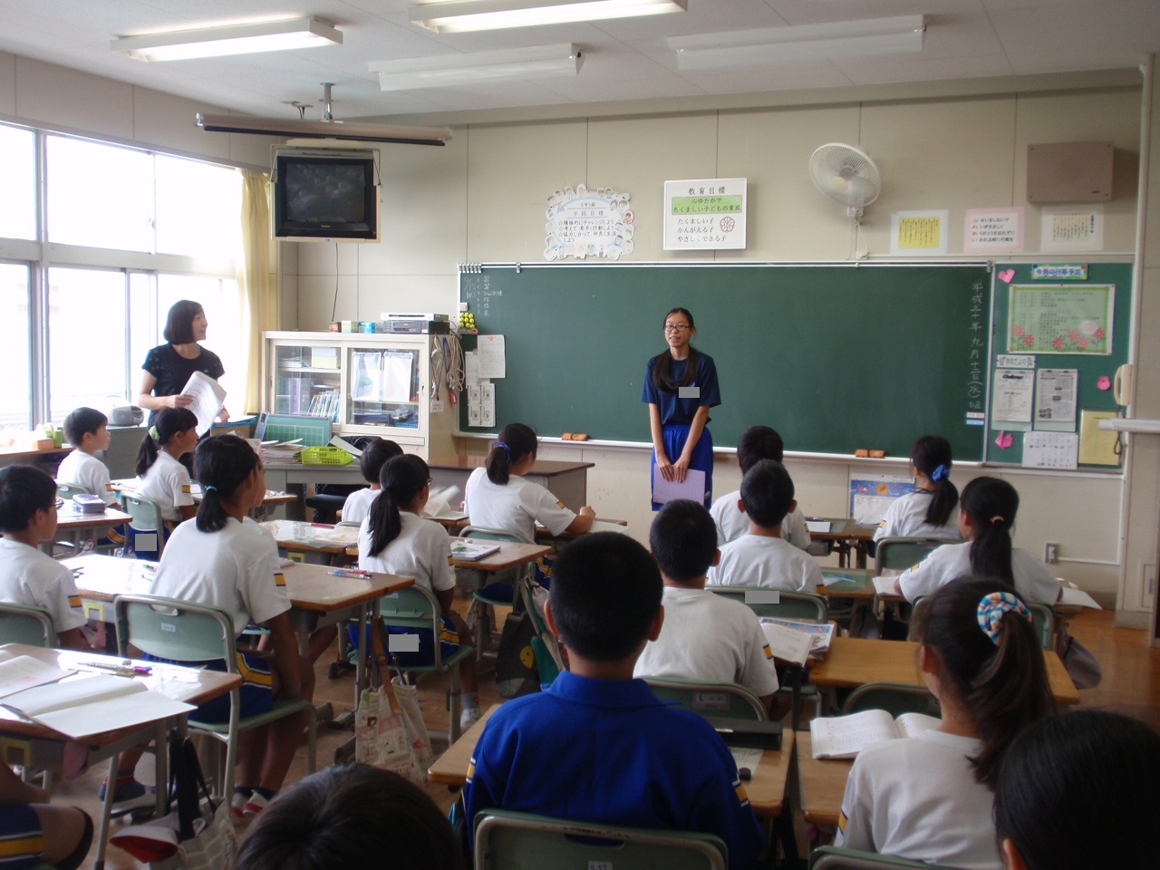 私が思ったよりみんな元気でそのテンションに追いつくので精一杯でした。二時間目と五時間目の授業では、普段教えられて勉強している私にとって、簡単に分かりやすく教えることが難しく感じました。