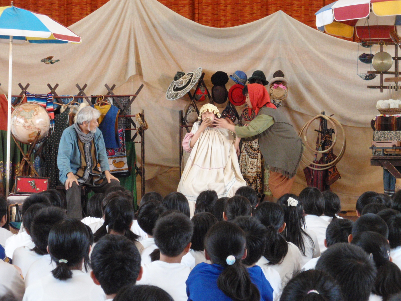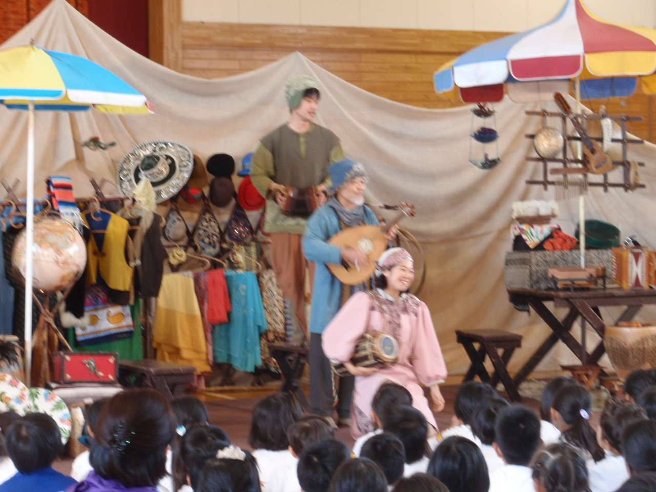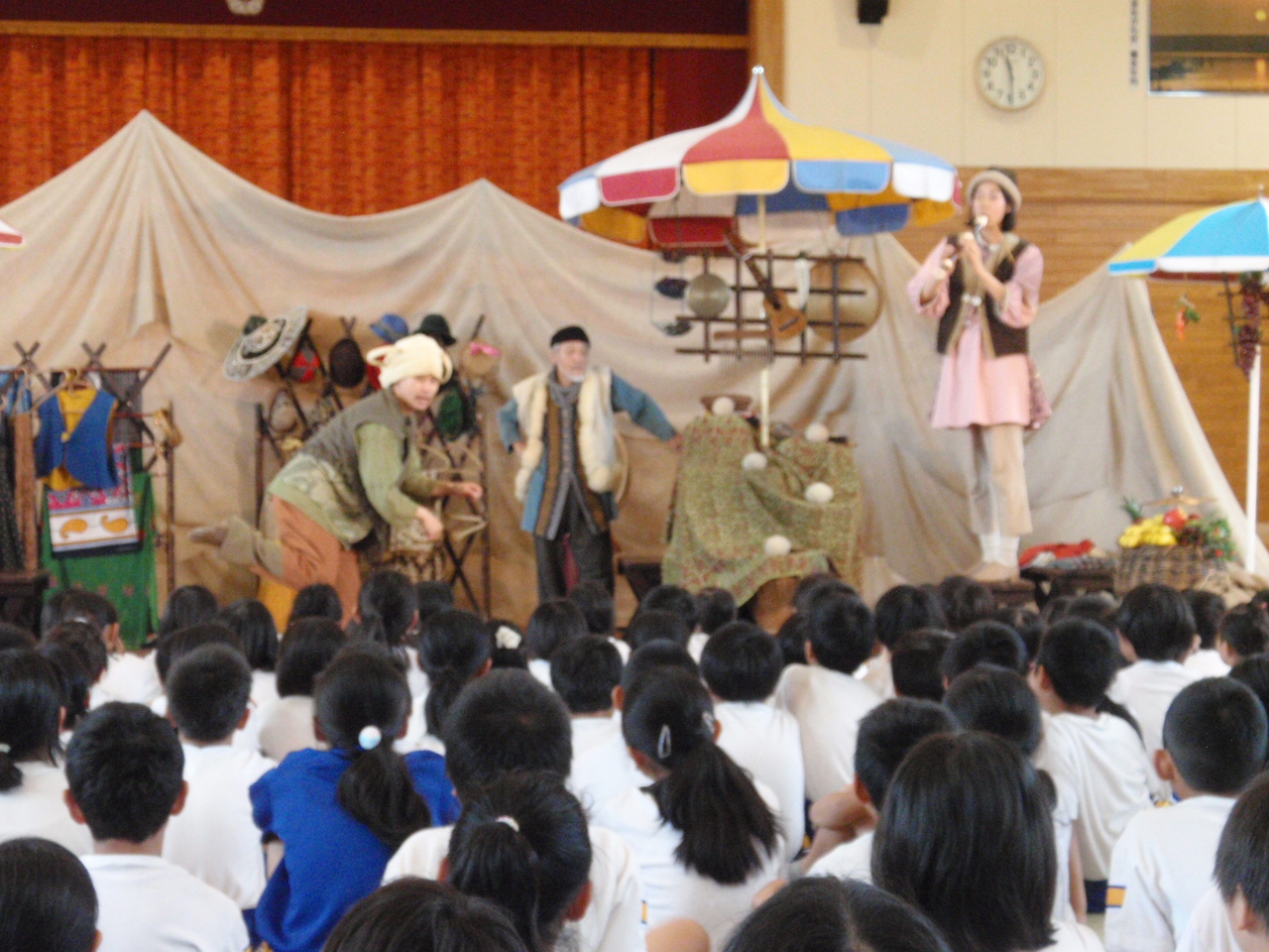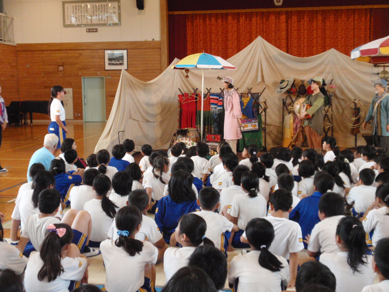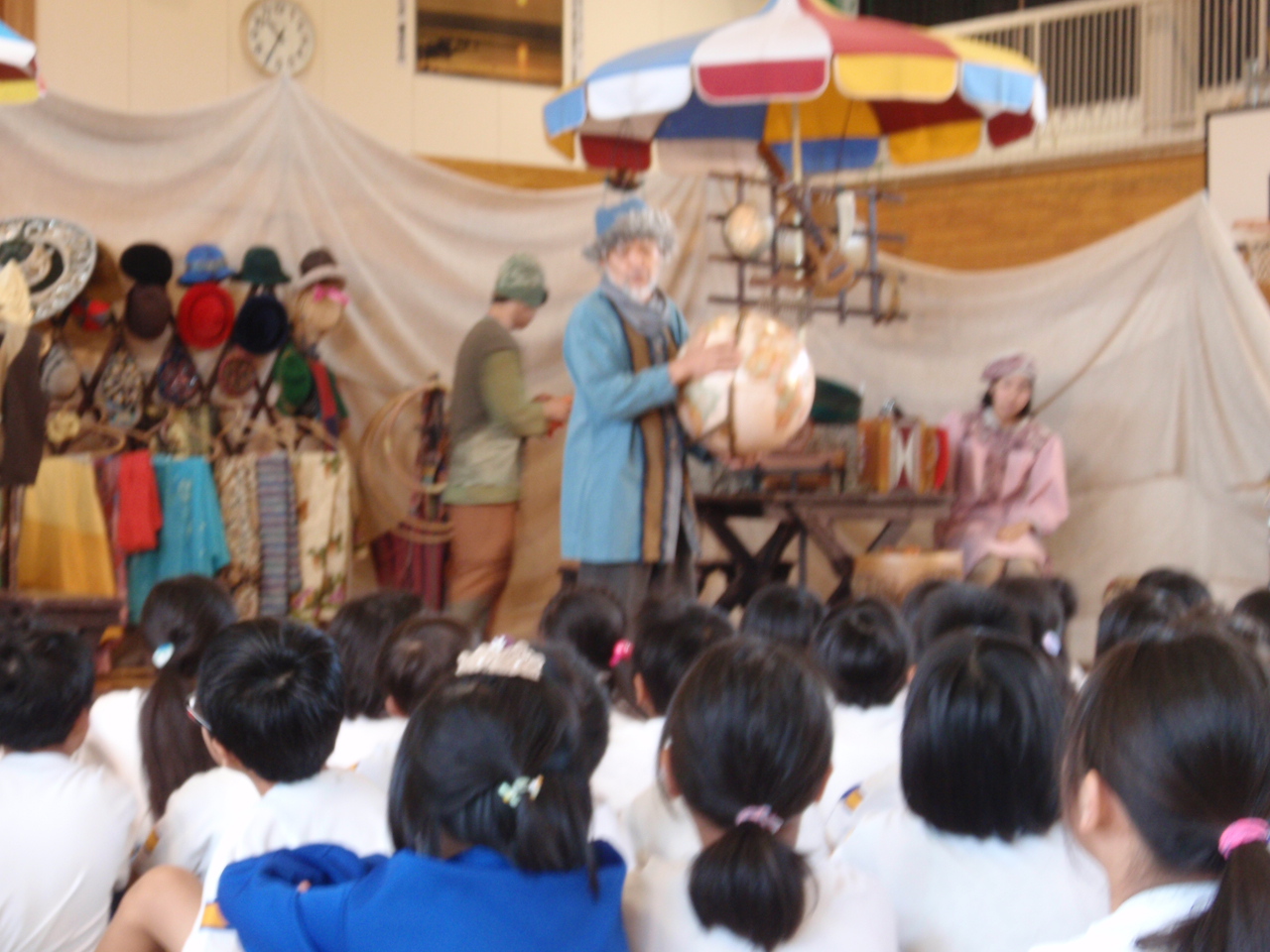 本日の3・4校時に、東京より「劇団 風の子」様をお迎えし、「鑑賞教室」を行いました。今日の演目は、「風の子バザール」。いろいろな国の楽しいお話の中に、笑いあり、音楽あり、マジックあり、ファションショーありで、と~~っても楽しい時間でした。