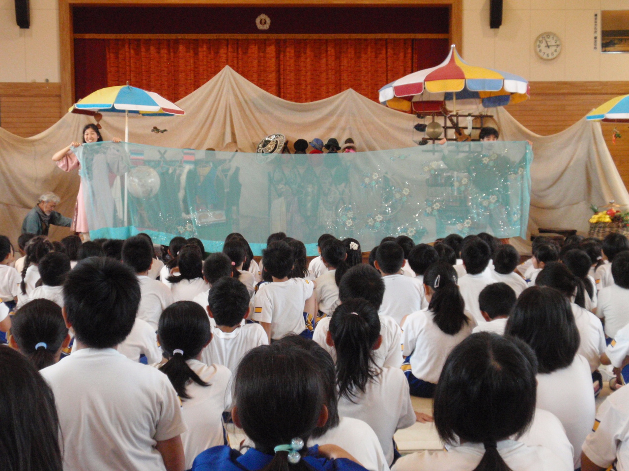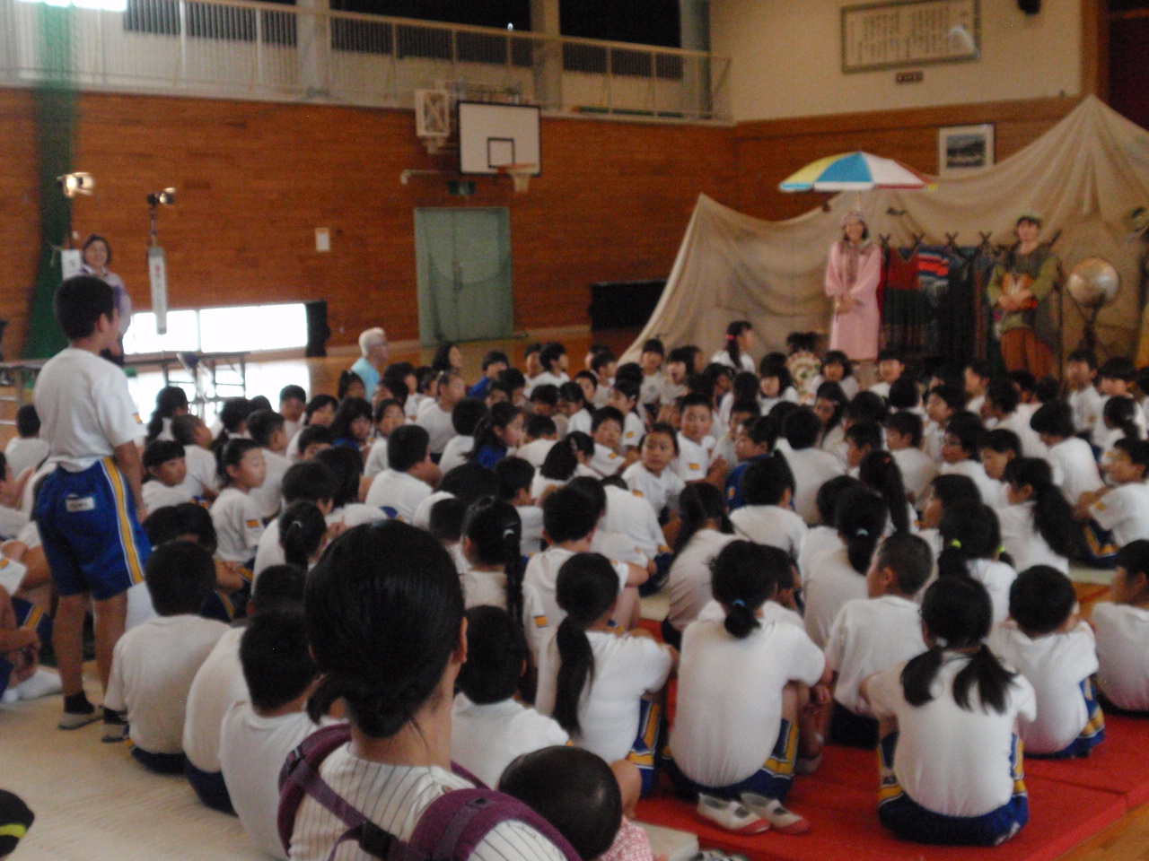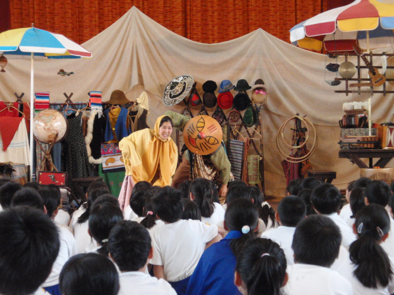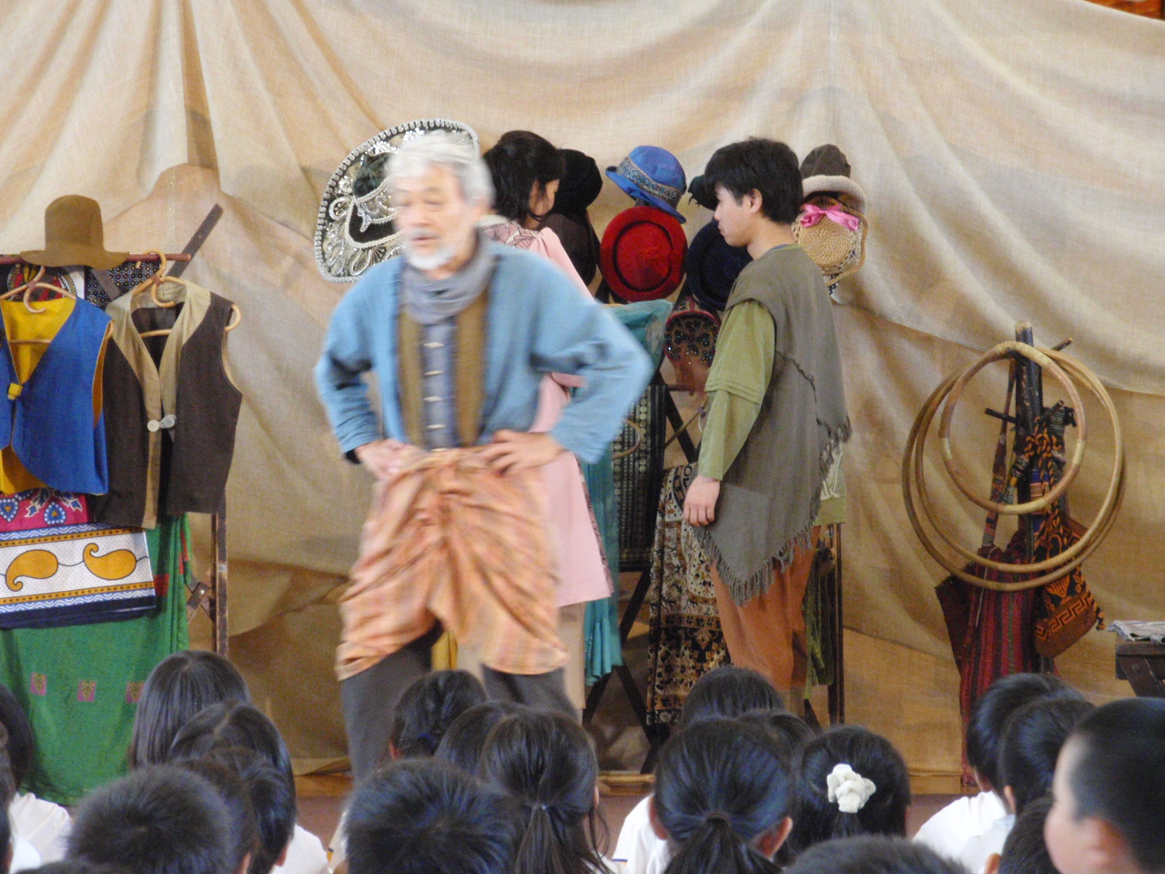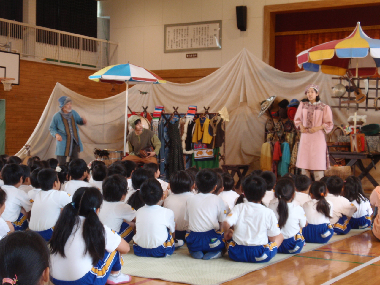本日の3・4校時に、東京より「劇団 風の子」様をお迎えし、「鑑賞教室」を行いました。今日の演目は、「風の子バザール」。いろいろな国の楽しいお話の中に、笑いあり、音楽あり、マジックあり、ファションショーありで、と~~っても楽しい時間でした。