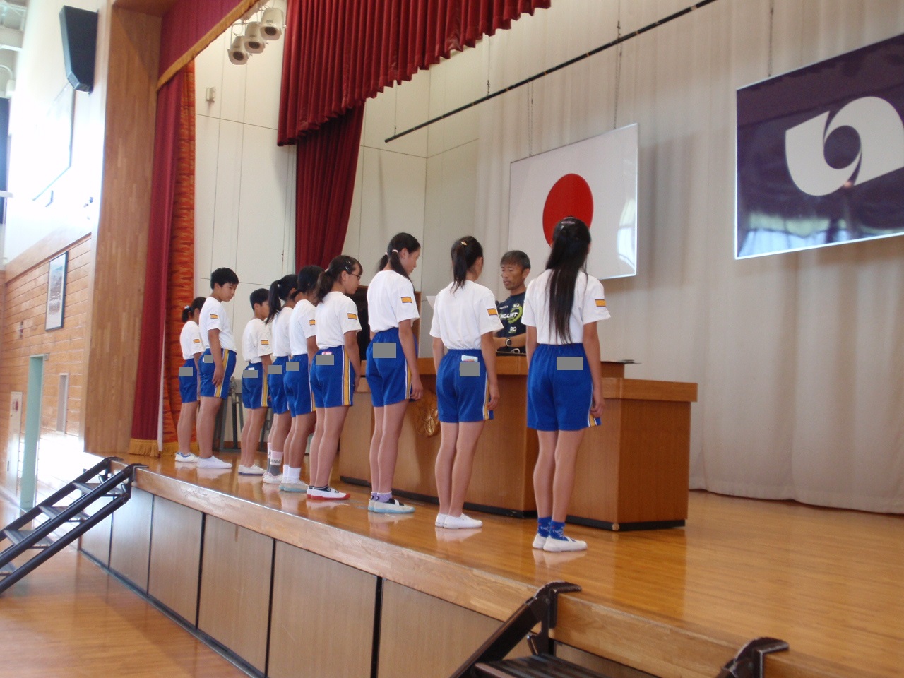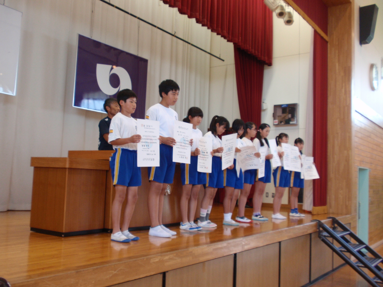 今日の全校集会で、6月20日に行われた「いわき市小学生陸上競技大会」の表彰式を行いました。リレー・個人種目あわせて9名の児童が12枚の賞状を手にしました。おめでとう!