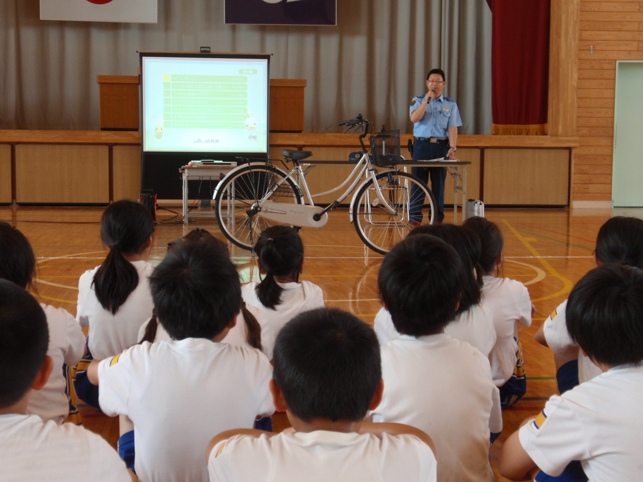 2・3校時に、高久駐在所の大和田様を講師にお迎えし、「第2回交通教室」を行いました。今回は、自転車の正しい乗り方と交通ルールについて、下学年・上学年に分けて行いました。大和田様より、自転車に乗る際の注意「ブタはしゃべる」について、教えていただきました。
