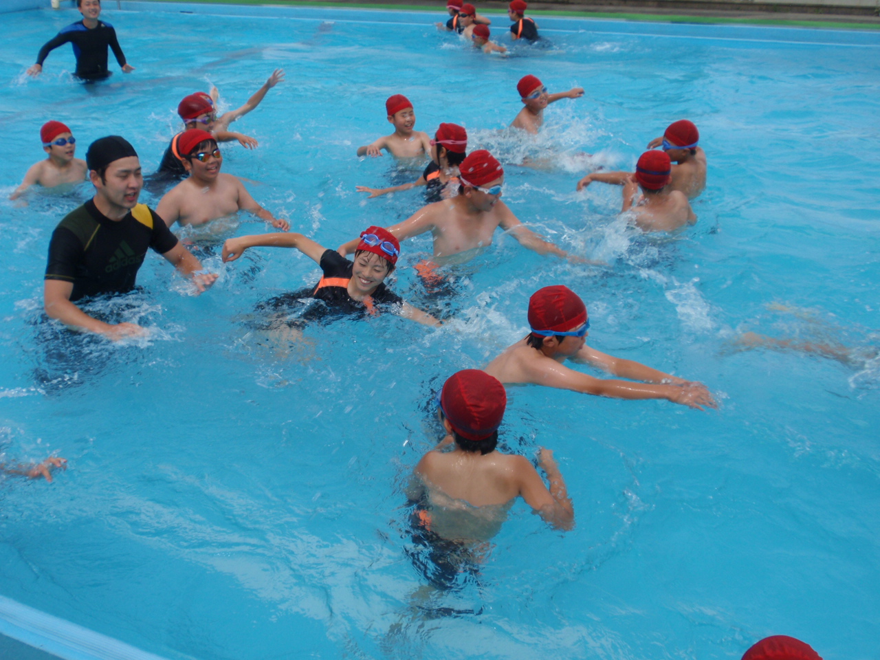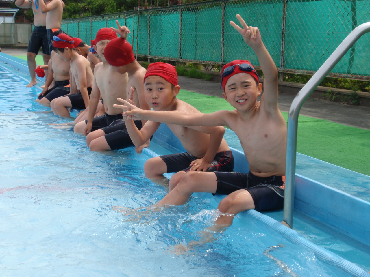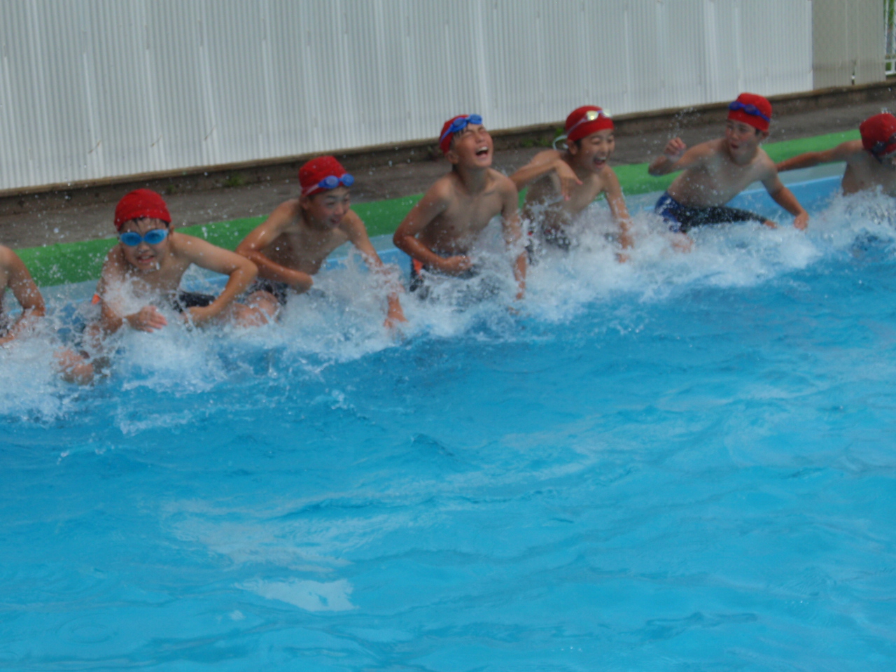 5校時に、5・6年生がプールでの学習を行いました。陸上大会の練習や天候不順等が重なり、今日が初めてのプールとなった5・6年生、約1年ぶりの感触に、歓声を上げて大喜びでした。