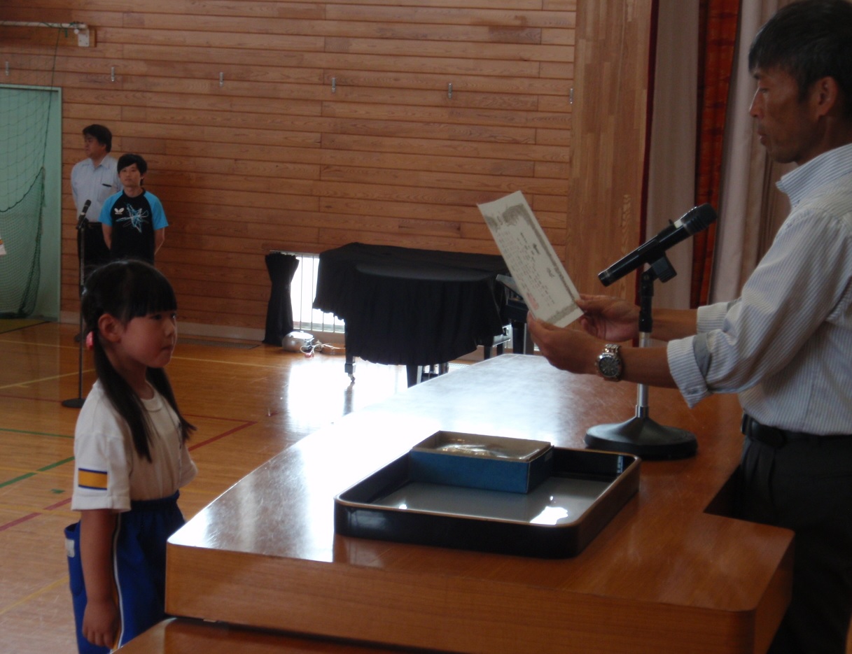 今日の全校集会で、歯科衛生書写コンクールで銀賞に輝いた1年生の表彰がありました。