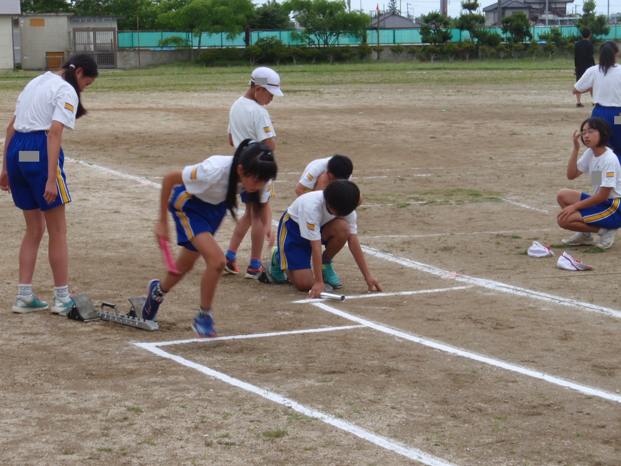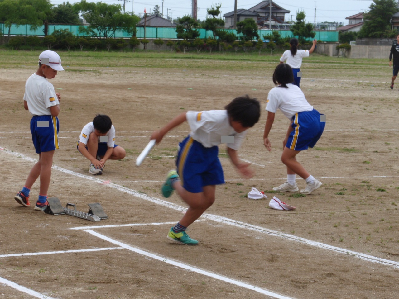 6年生が出場する陸上大会まであと2日、6年生は最後の調整を行っています。リレー練習の様子です。