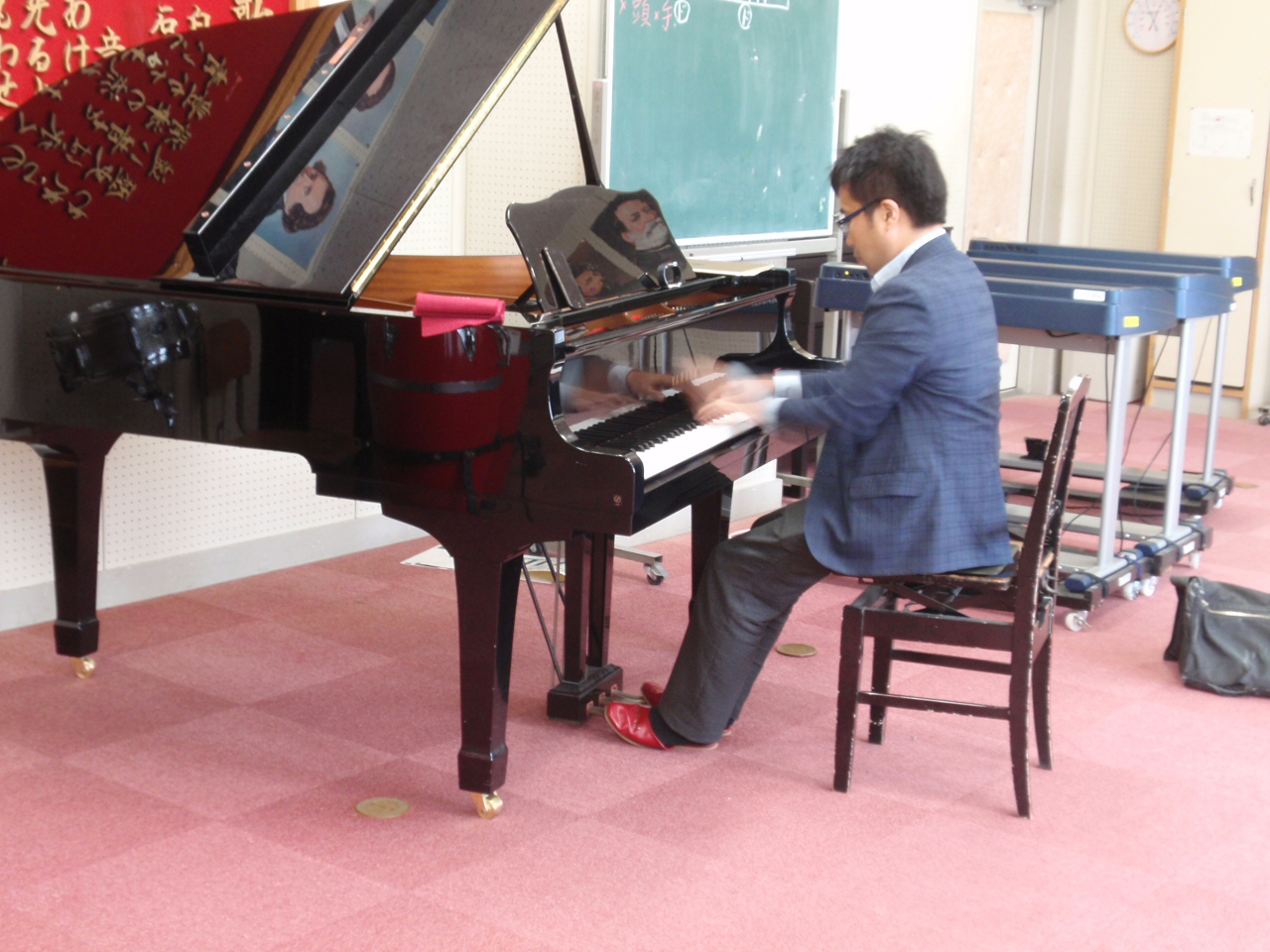 9月5日(水)に、5・6年生が「おでかけアリオス」で、一流アーティストの演奏を聴かせていただきますが、今日、事前打合せがありました。いわき市出身のピアニスト長瀬さんにお越しいただき、場所を確認したり実際にピアノを弾いたりしながら、当日のせてぃんぐなどを確認しました。東京芸術大学でも教鞭をとられている長瀬さん、ショパンの「ノクターン」を弾いていただきましたが、一流アーティストの演奏は「さすが!」の一言!うっとりと聴き入ってしまいました。著作権の関係で、実際の演奏(動画)をお見せできないのが残念ですが、お時間のある方は、当日、是非足をお運びください。