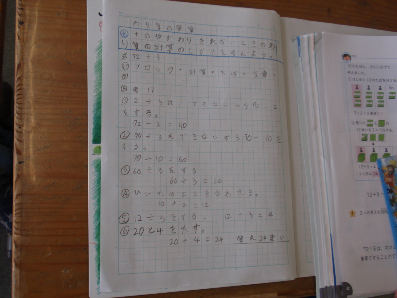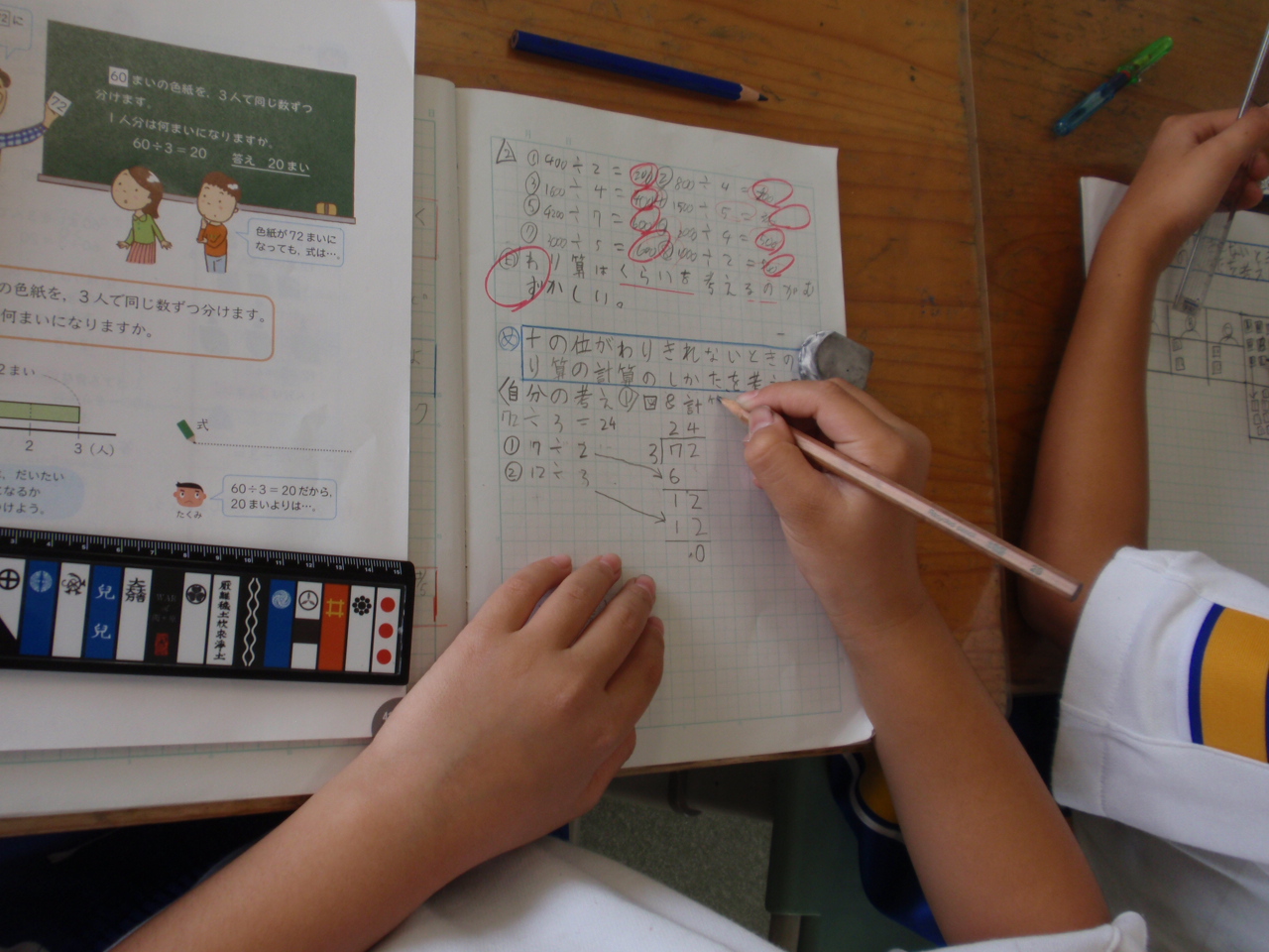 「4年:算数」~10の位がわり切れない場合のわり算のしかたを考えました。