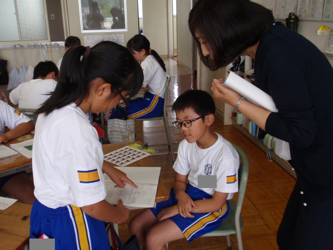 大切なことを落とさずに、話したり聞いたりする練習をペアで行っています。