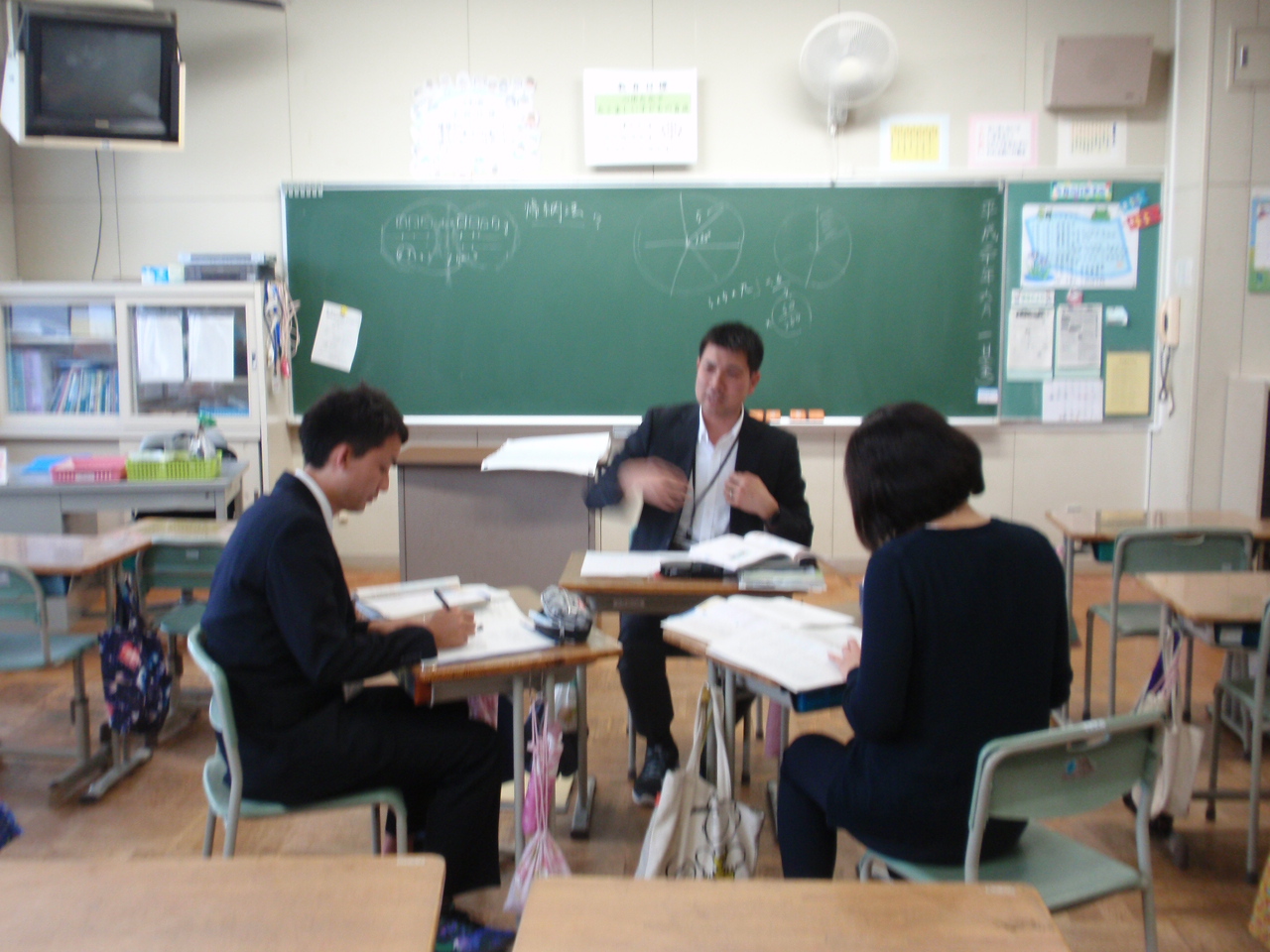 5月初旬の「授業案検討」に始まり、「指導案の作成・修正」、そして本日「実際に授業」を行い具体的に改善点についてご指導いただきました。