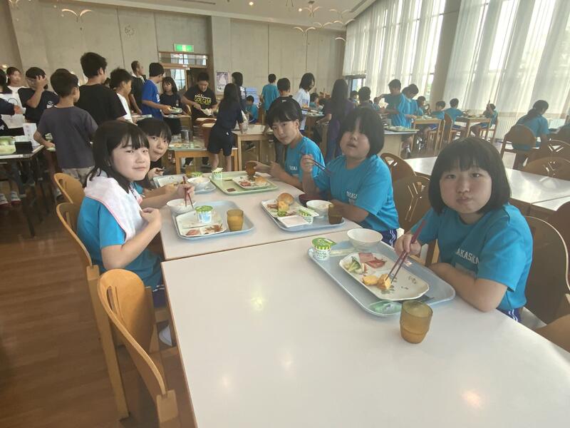 2024年9月3日 09時25分おはようございます。全員元気に朝食を食べました。朝食前には、部屋の掃除など、自分たちでしっかりと活動できました。