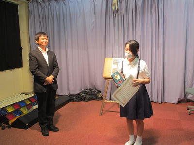 今日は第1学期の終業式です。放送で式を行いました。授業日数で63日。途中臨時休業や分散登校など、例年にはないことがありましたが、無事に夏休みを迎えることができました。8月25日第2学期始業式にまた元気に会えることを楽しみにしています。ALTのカイリーン・オウ先生が、任期を終え、母国ニュージーランドに帰国することになりました。今までありがとうございました。