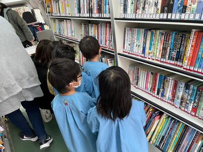 移動図書館がやってきました。もも組さんも初めて移動図書館に乗り込むことができました。
