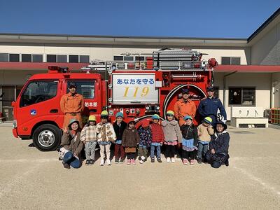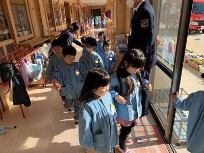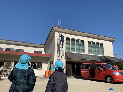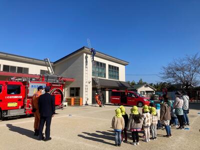 消防車に乗せてあるはしごを使うところを見せてもらいました。