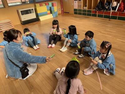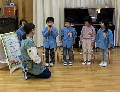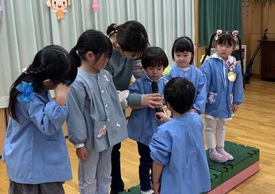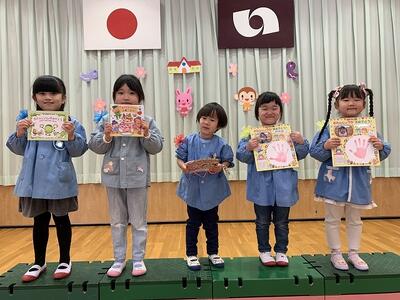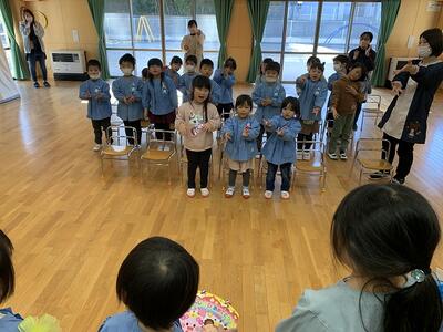 今日は1月のお誕生会。今回から年中組が進行します。上手でしたよ。