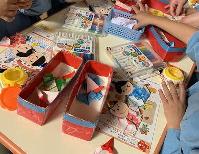年長組、おひな様づくり。