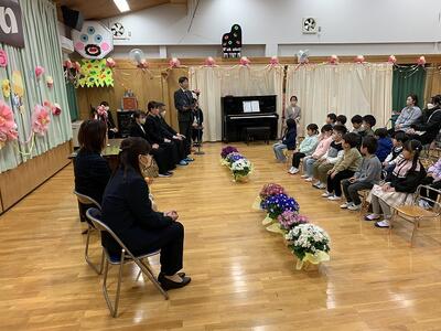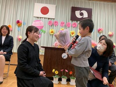 2024年3月29日 11時30分今日は高坂幼稚園と宮幼稚園合同の離任式を行いました。