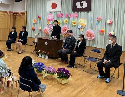 そして、園児と保護者の待つ式へ。荒天にもかかわらず大勢集まってくれました。