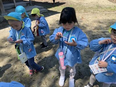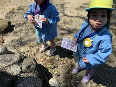 「太陽」「石」「チューリップ」「鳥」「ドングリ」「あり」など、あったら、見たら、シールを貼ります。夢中になって探していました。