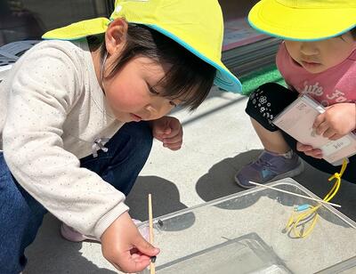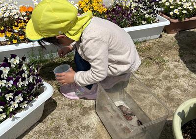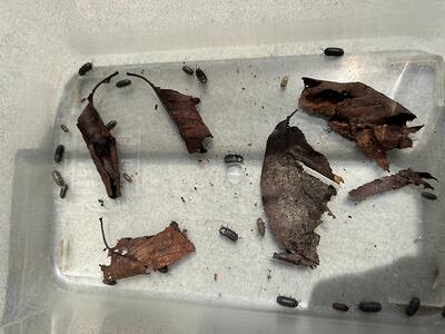 ケースに集め、枯れ葉を入れました。どうなるかな?