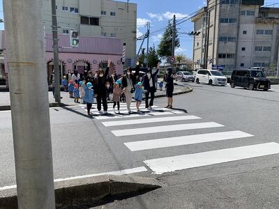 しっかりと手をつないで歩きましょう。
