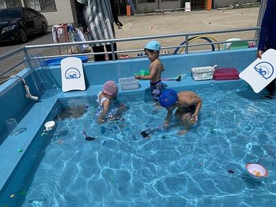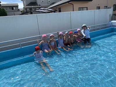 今シーズン最後のプール(=幼稚園最後のプール)になるかも?と記念写真。