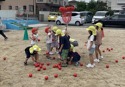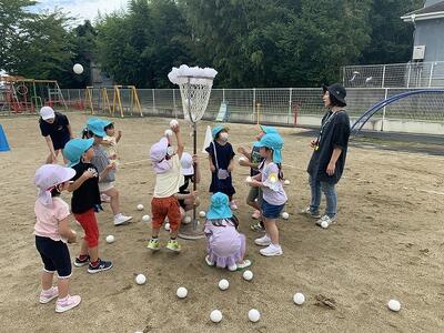 玉入れもしました。2回やりましたが、2回目の方がたくさん入ったね。