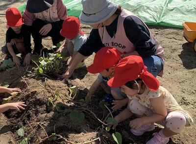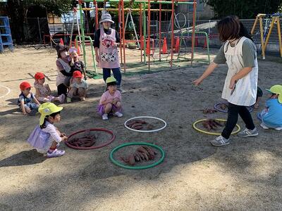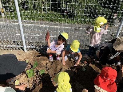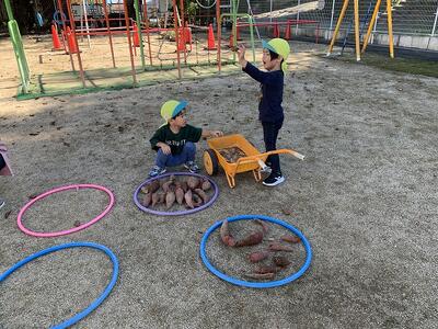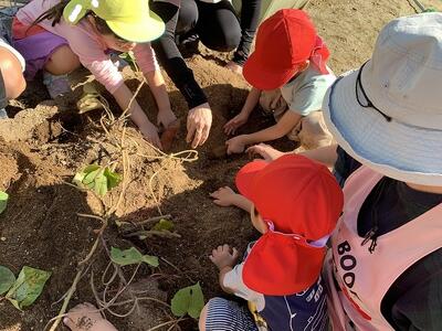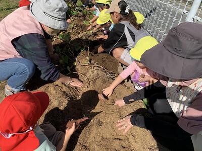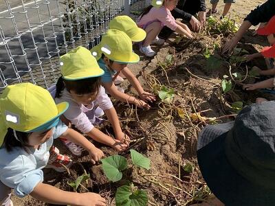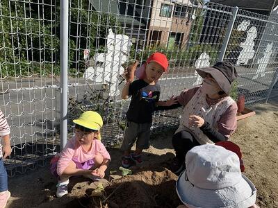 2024年10月15日 12時35分今日は、もも組とゆり組が芋掘りをしました。