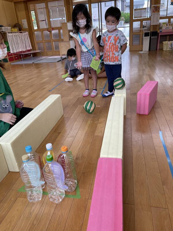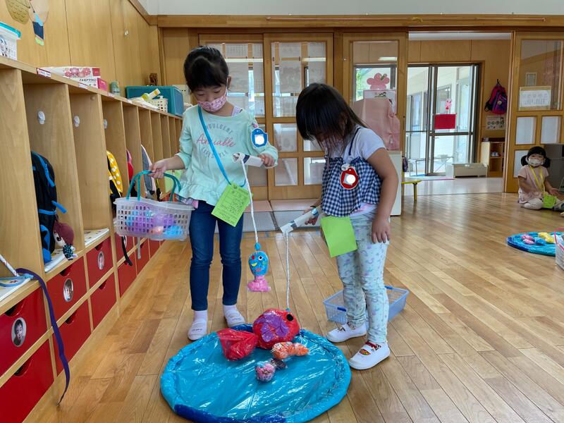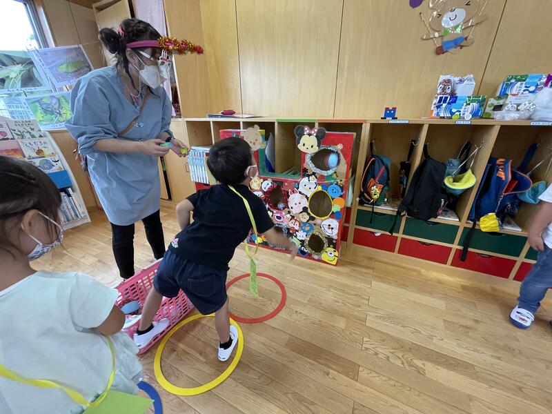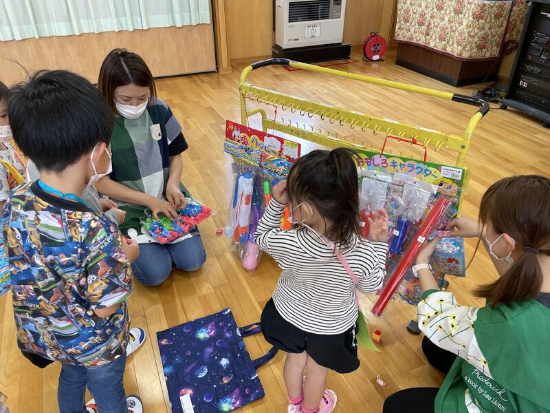 さまざまな行事が中止となっていますが、少しでも子どもたちが楽しめるように・・・と幼稚園内でミニお祭りごっこを行いました