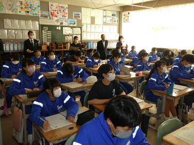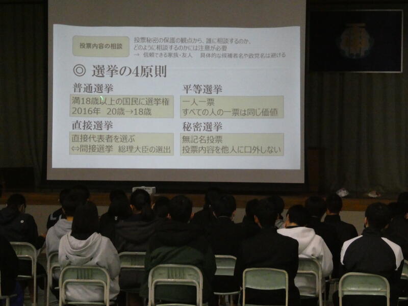 本日11月20日(水)13:35から3年生を対象に「いわき市未来の有権者育成事業」の一環として出前講座が開催されています。