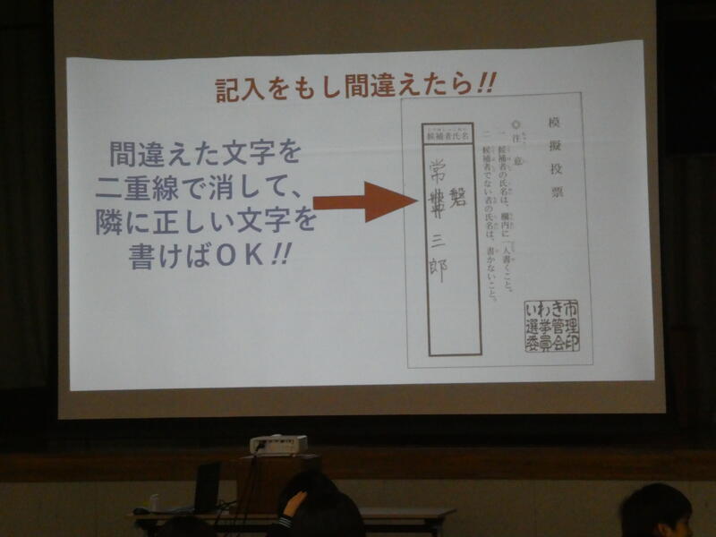 3年生は近い将来,有権者として選挙に関わることになります。そこで模擬選挙をとおして選挙への理解を深めていました。いわき市選挙管理委員会の皆様ありがとうございました。
