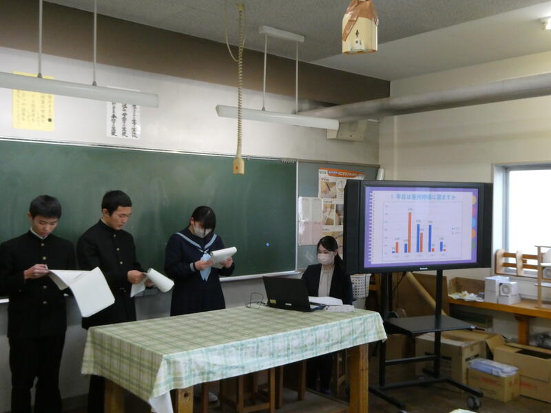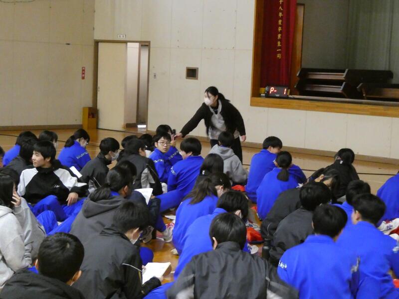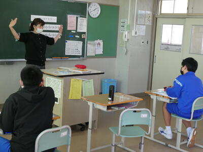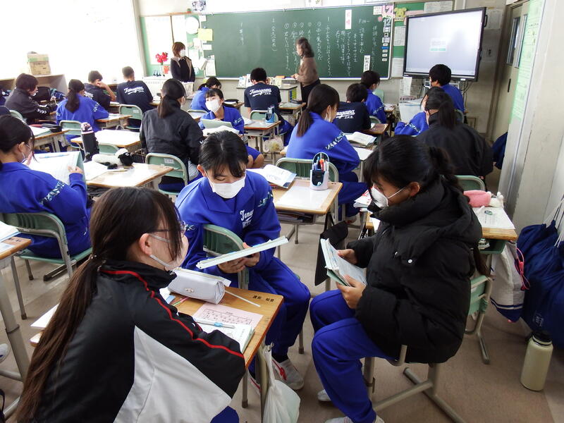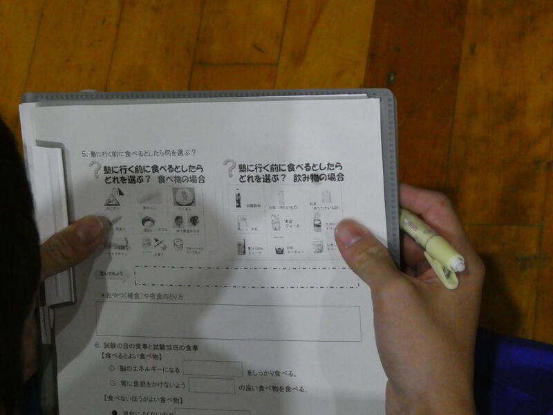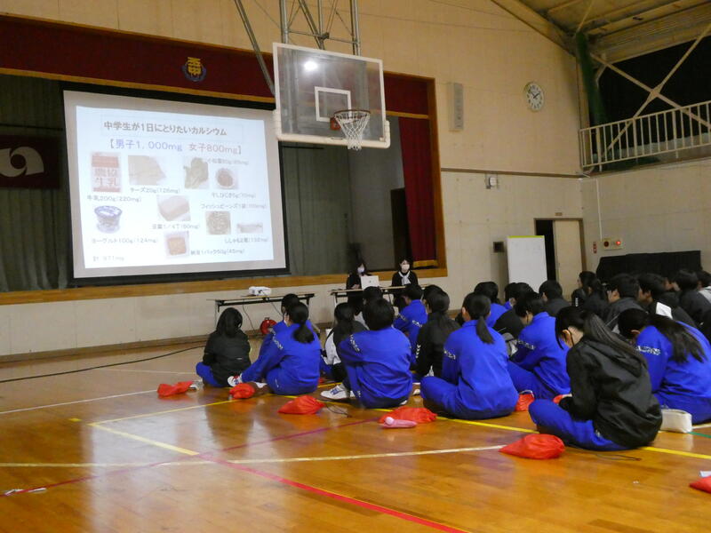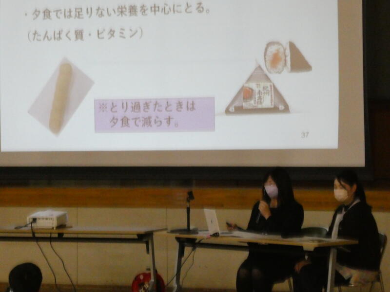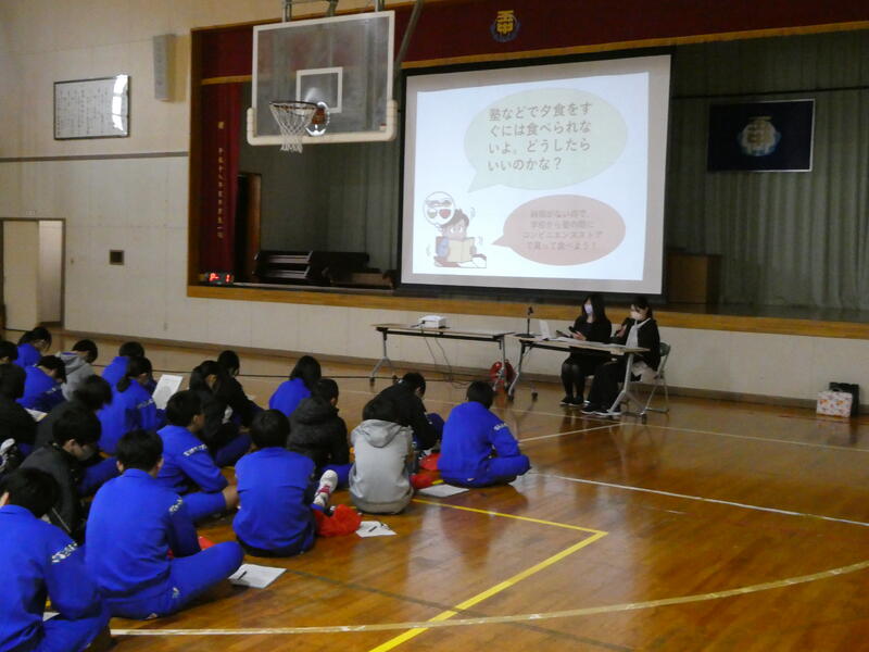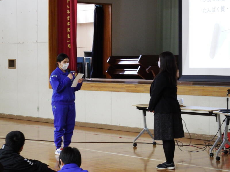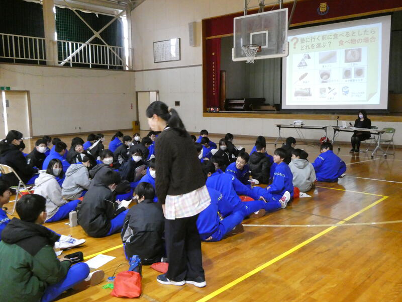 3年生は高校受験を前にして学力向上に努めている時期です。食生活が学力に与える影響や受験前に適した食事や補食の摂り方について学びました。栄養バランスのとれた食事を心がけ,希望している進路の実現をめざしてほしいと思います。