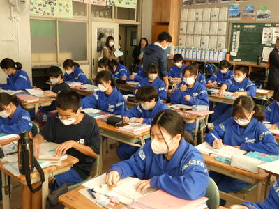 1回目は6月28日(金)の午後から小名浜三小へ訪問させていただきました。今回は,小・中連携教育の一環としての2回目の小中連携授業参観・情報交換会で,小名浜三小の先生方に授業や生徒の様子を見ていただきました。