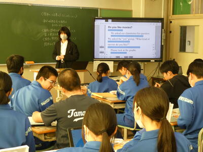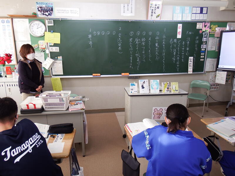1年生の国語の授業でブックトークを開催しました。生徒達は、学校司書の先生からそれぞれの紹介本の魅力を伝えられ、どの本を読んでみたいか議論を交わしながら読書に関する興味関心を高めました。