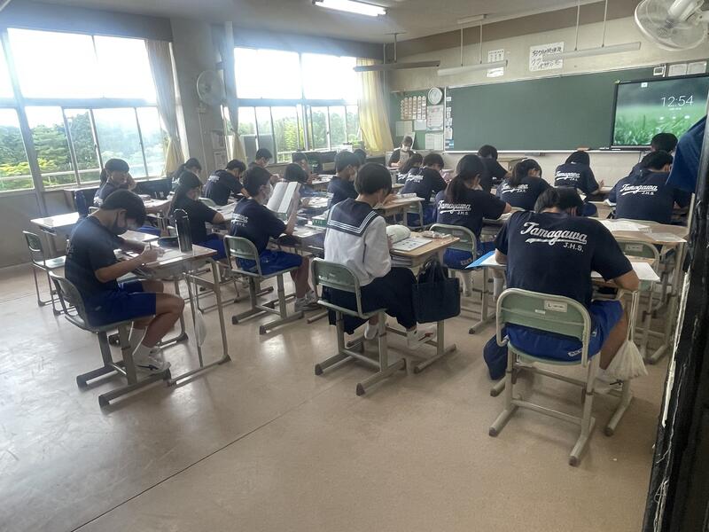 来週の期末テストに向けて、昼休みは学習タイムとして、全教室で学習に取り組む時間となっています。
