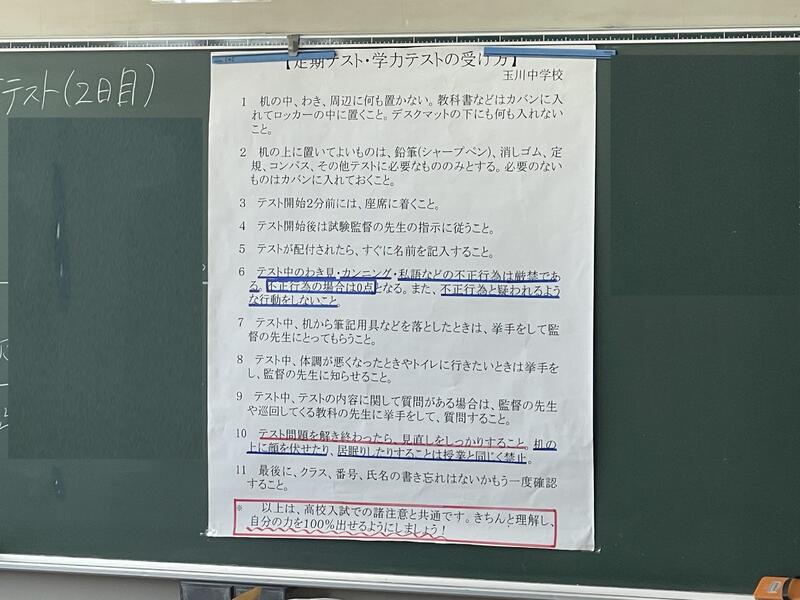 今日から期末テストが始まりました。1年生にとっては最初の定期テストです。
