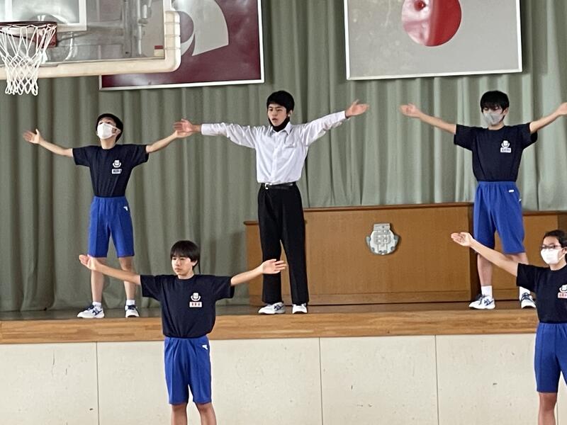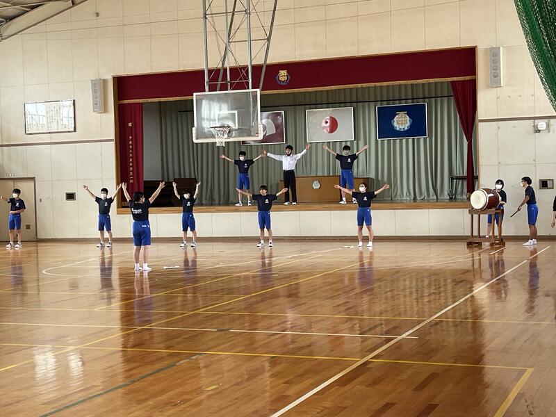 体育館では、来週行われる激励会に向けて、応援団の練習が始まりました。