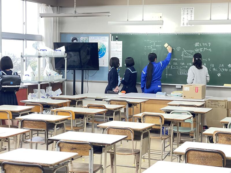 それぞれのクラスで学級活動を行って、新年度のスタートに向けた取組を行っています。