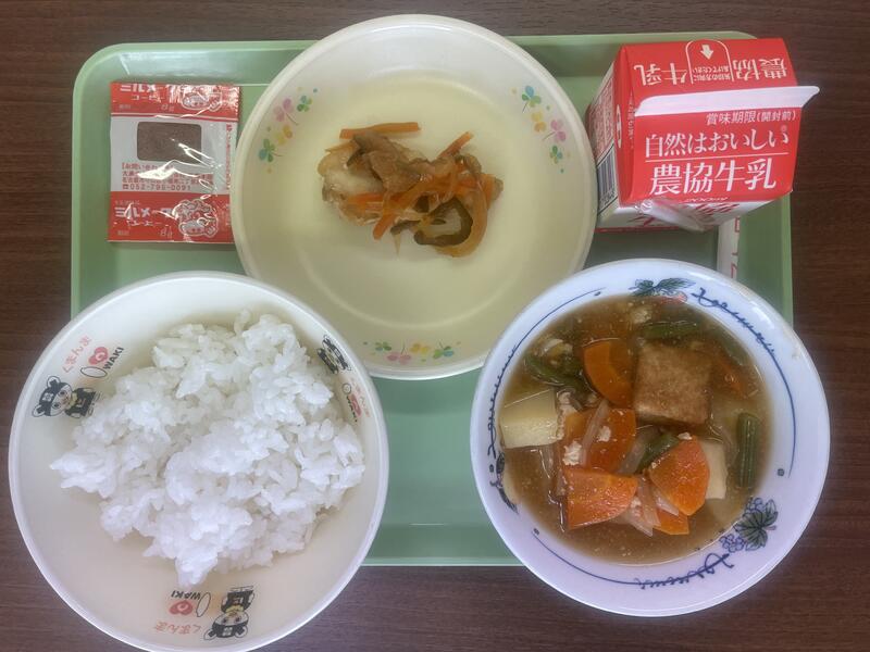今日は、コーヒー牛乳、ごはん、金頭の南蛮漬け、じゃが芋のそぼろ煮が出ました。