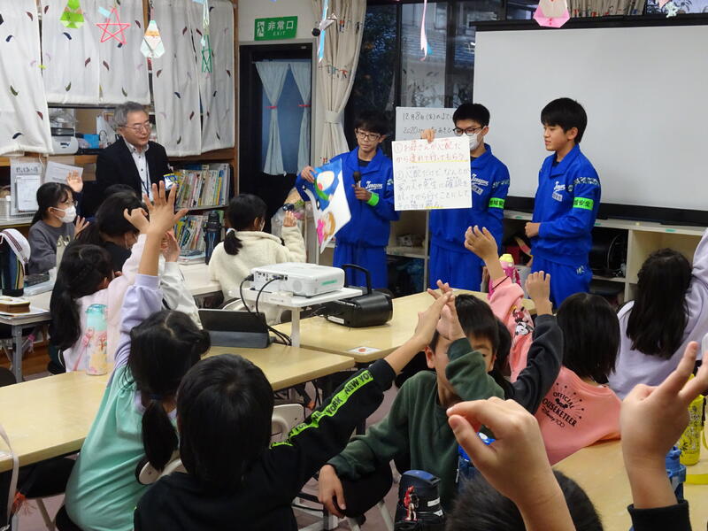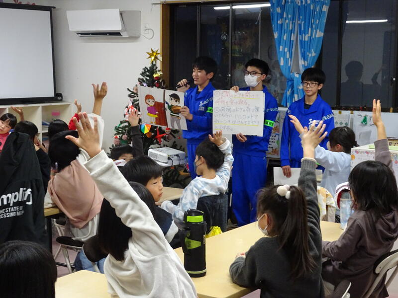 2023年12月8日 16時50分生徒会本部役員が、警察の方々と小名浜三小学童に出向いて、学童の子たちに向けて防犯啓発活動を行いました。犯罪に巻き込まれないために気をつけることを紙芝居にして、子どもたちの興味を引きながら上手にお話していました。学童の子どもたちも紙芝居に興味を示し聴いていました。この活動が、犯罪被害防止につながることを願っています。