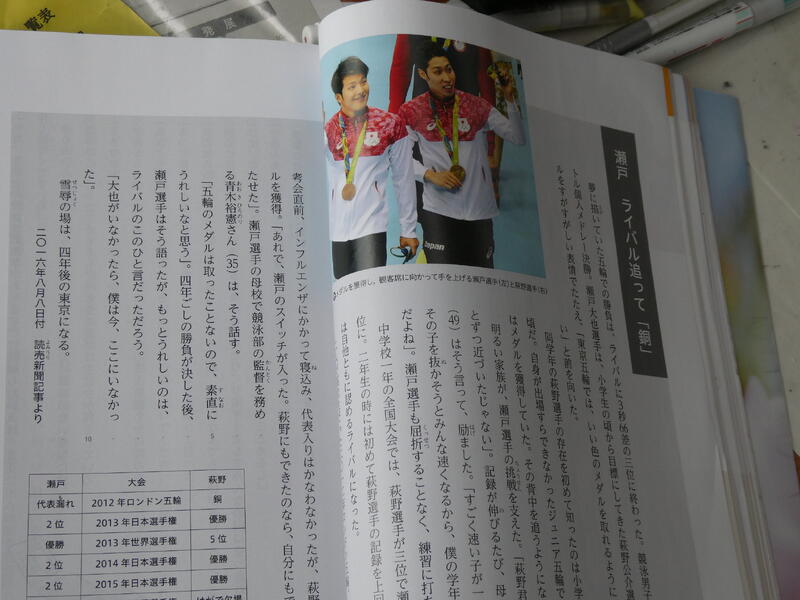 オリンピックの舞台で表彰台に上がった競泳日本代表選手の2人にスポットを当てた2編の新聞記事。それぞれの視点で自らを向上させることができた友でありライバルの存在を振り返った内容でした。