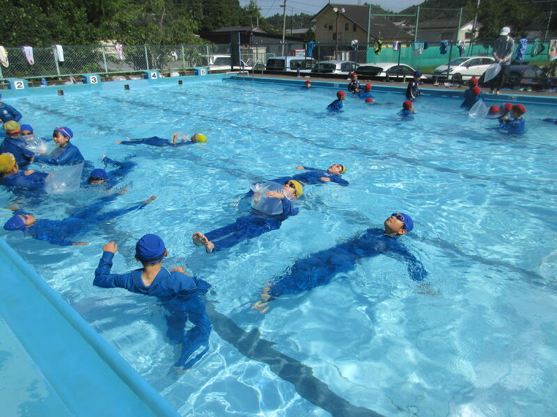 令和6年7月18日(木)、5・6年生は合同の体育、最後の水泳の授業は「着衣水泳」です。水の事故を未然に防ぐため、着衣で水の中を歩いたり、泳いだりして、水着との違いや着衣の難しさを体験しました。また、もしもの場合の落ち着いた対応や長い時間浮くこと(浮き身)の大切さを学習しました。最後は、全員で協力して、波を起こすことにも挑戦しました。保護者の皆様には、体操着を使用した水泳の授業へのご理解とご協力に感謝します。