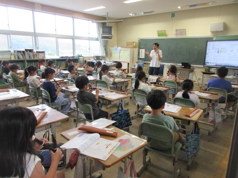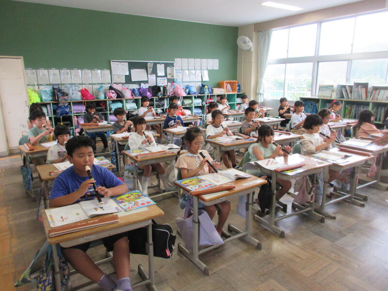 3年生は、音楽「シシシでおはなし」の授業です。リコーダーの「シ」の音を使って、お話をしました。「お・は・よう、お・は・よう、な・に・し・て・あ・そ・ぶ、…」本当にお話が聞こえてくるようでした。