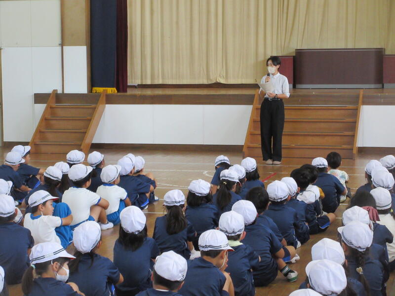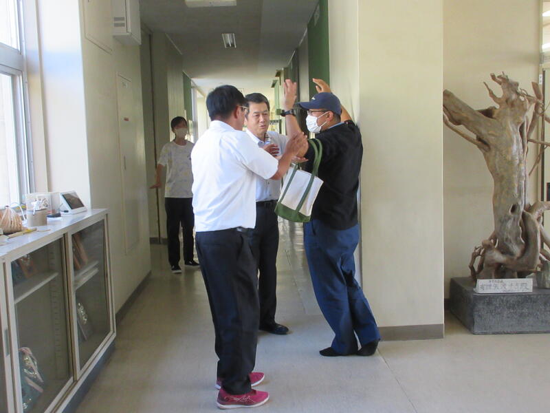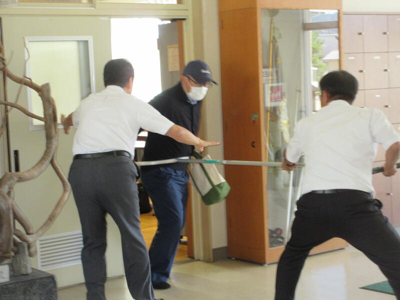 2024年9月17日 13時23分 令和6年9月17日(火)、不審者対応の避難訓練を実施しました。職員玄関より侵入し、2階に移動しようとする不審者を職員が複数で説得、制止に当たるとともに、校内への緊急放送により、担任が教室に鍵をかけたり、子どもたちを体育館に避難させたりしました。避難の様子を見た警察官の方からは、先生の話や放送をよく聞き、安全に避難できていたとほめていただきました。また、制止を振り切ろうとする不審者を、刺股(さすまた)やいすで取り押さえる訓練もしました。