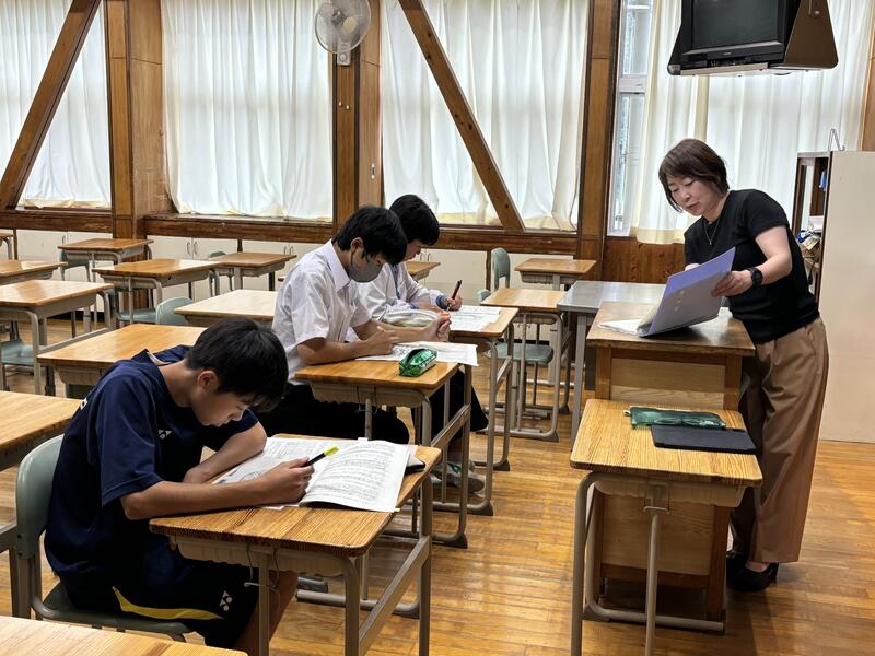 いよいよ来週に迫った県中体連陸上大会について、要項をもとに確認しています。選手のみなさん、練習の成果を発揮できるよう、祈っています。