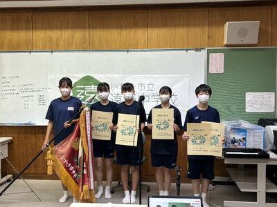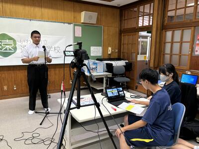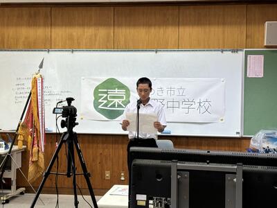 表彰に始まり、修学旅行に向けての発表まで、盛りだくさんの内容でした。オンラインながらも、カメラの前に立つ生徒も、教室で参観する生徒も、緊張感をもってしっかりとした態度で臨んでいました。